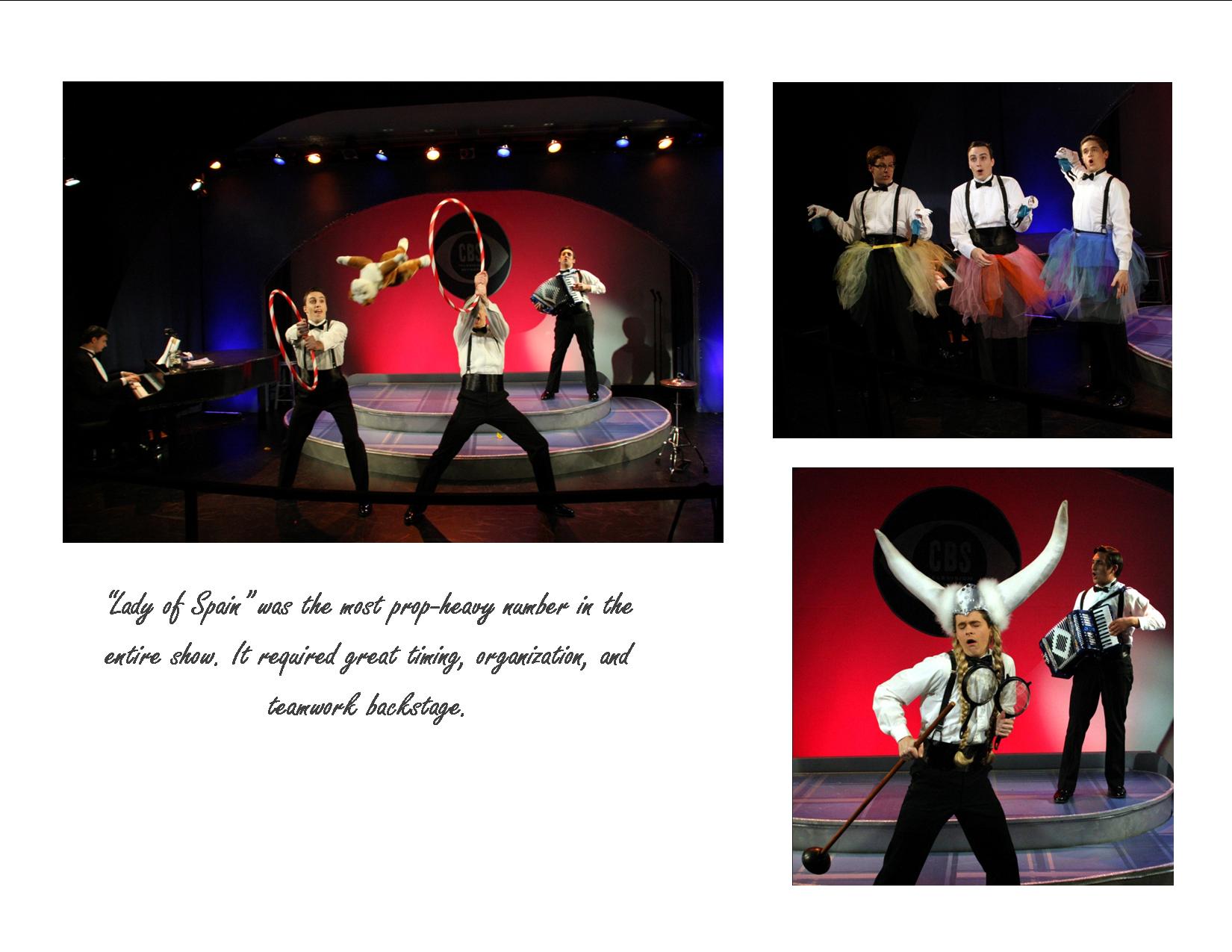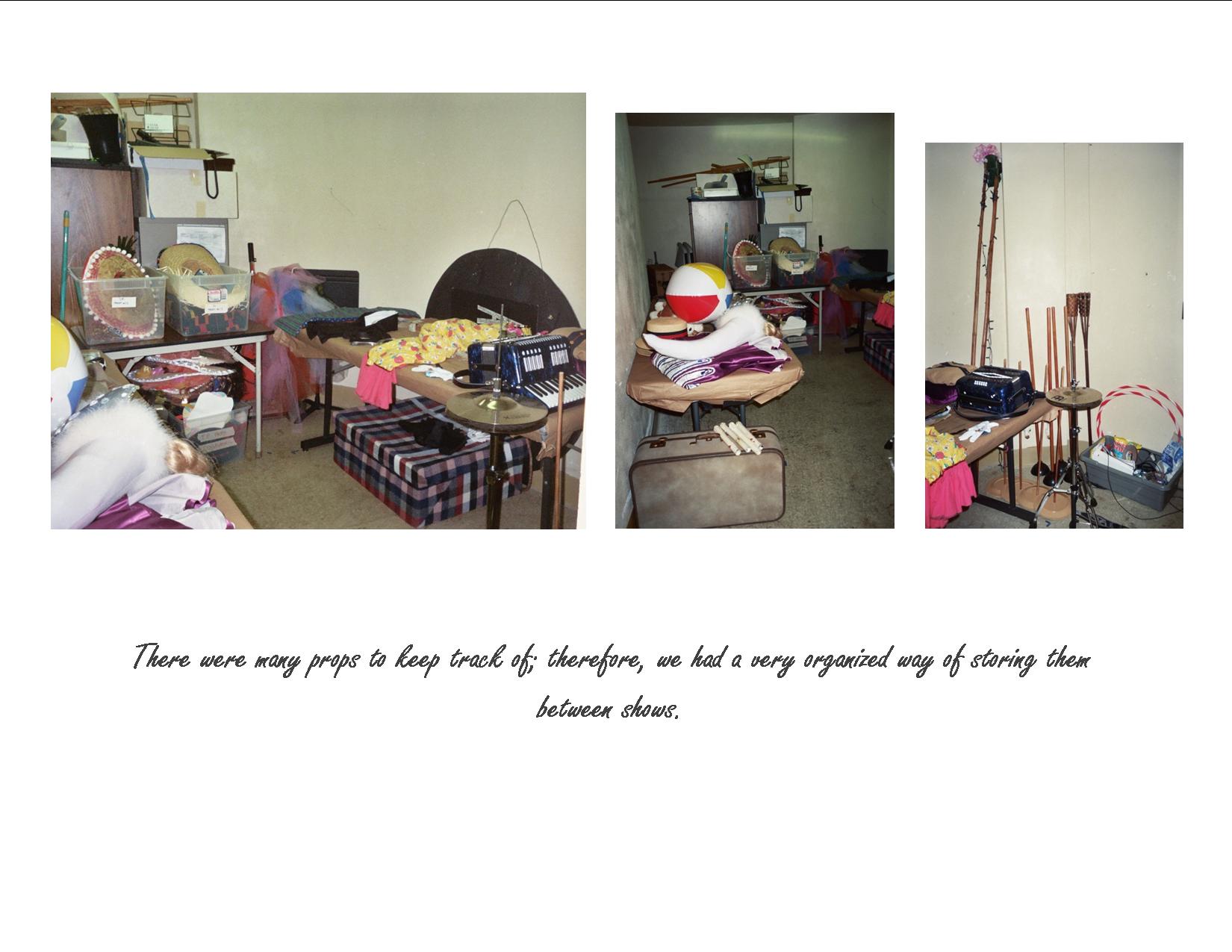 Ms. Kemble was a Quick Changer and was on the Properties Run Crewfor this Production, in charge of keeping track of props on and off the stage. She also built and acquired some of the props for this production.