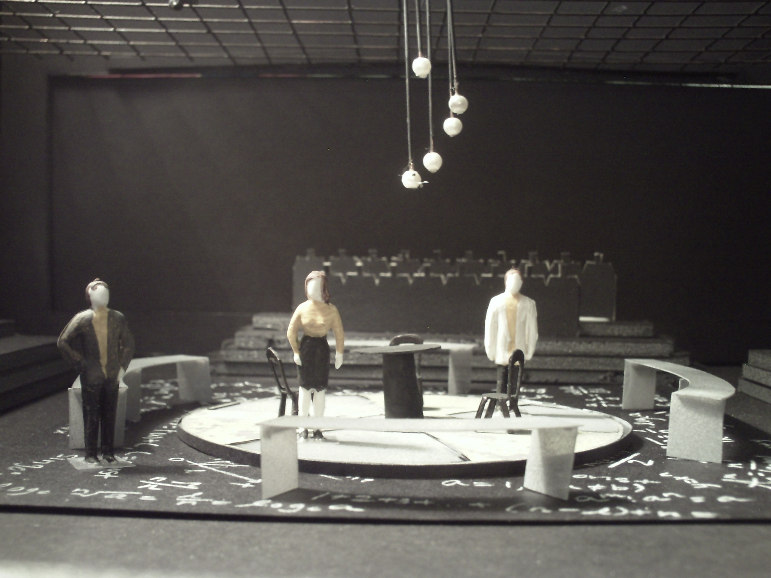 Ms. Kemble designed, drafted, and built, a scale model with all corresponding scenic changes for a theoretical production of “Copenhagen.”